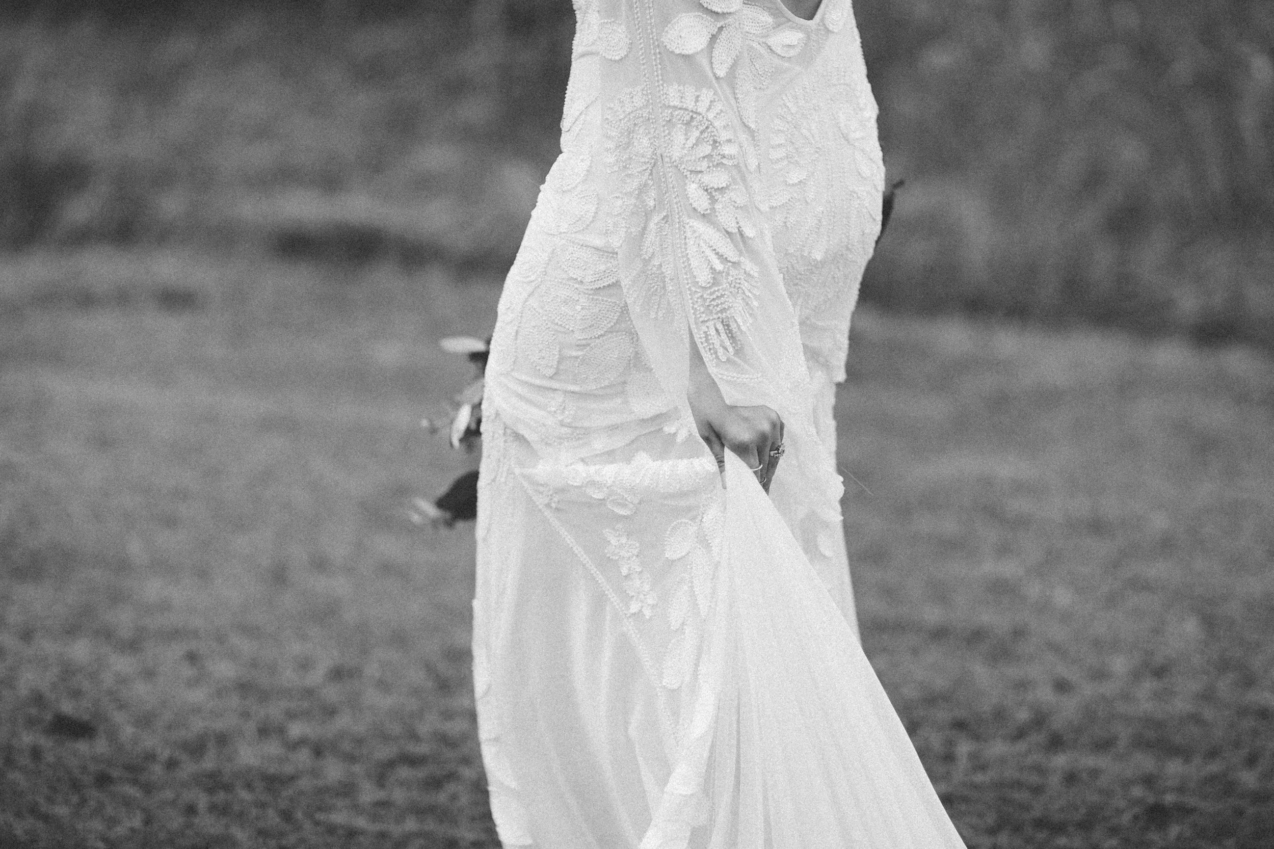 photography: Sleepy Fox Photography // second shooter: M.Newsom Photography // venue: Hardy Chambers Farmhouse in Pulaski, Tennessee // event design + planning: Hazel + Scout (bride) // day of coordinator: Joanna White // florals: Old Frond // wedding dress: Rue De Seine // veil + headpiece: Fox & Hare // shoes + bridesmaid dresses: Free People // flower girl dress: Tea Princess // hair + makeup: The Transformation // groom + groomsmen attire: Asos // paper goods + calligraphy: Linen & Leaf // rentals: The House Nashville // bridesmaids gifts: Petal & Lux by Janna Park // bridesmaid necklaces: Katie Calvert